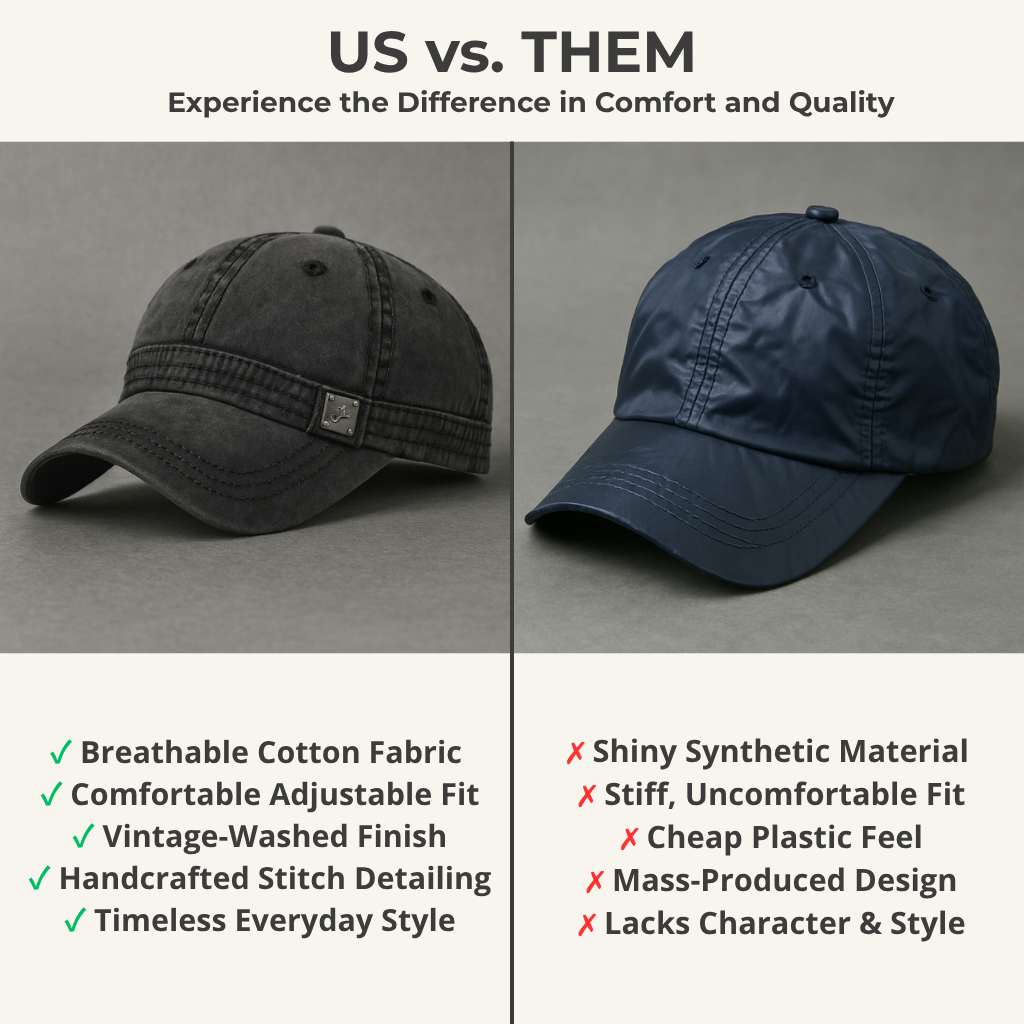 While ordinary caps rely on synthetic fabrics and mass production, ours are crafted with care from breathable cotton that feels soft from day one.
